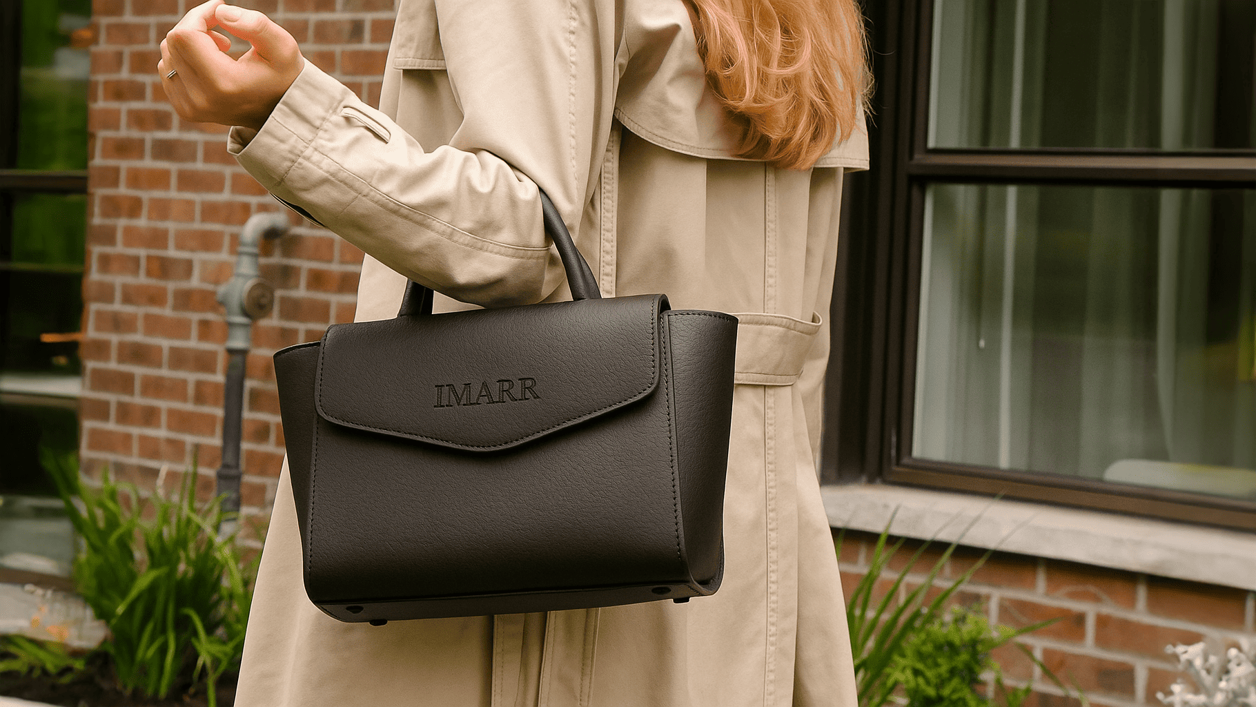 The standout feature is its beaded handle — soft, polished, and uniquely feminine. Paired with premium vegan leather and the silver IMARR logo, this bag offers a boutique designer look without the designer price tag.